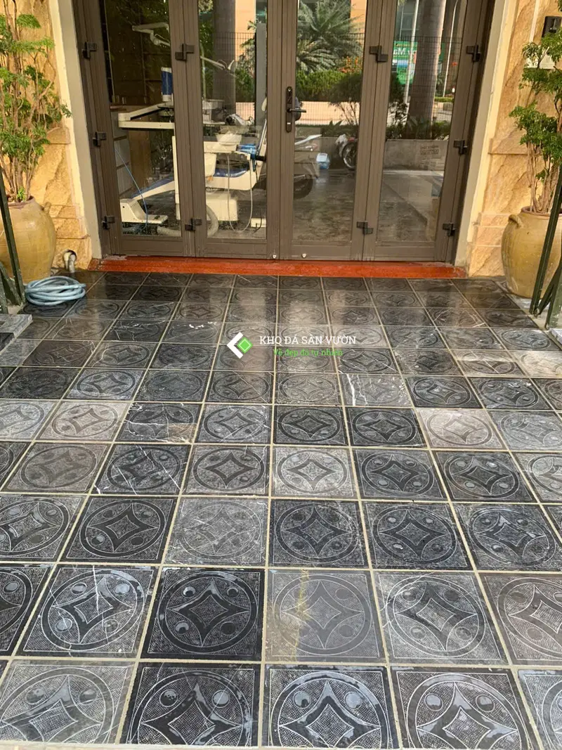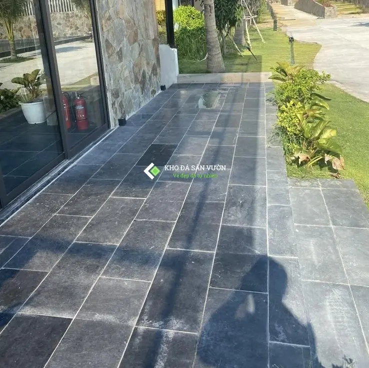 Màu sắc đen than sau khi mài hone mang tới sự trầm lắng và sang trọng cho sân vườn. Đá phù hợp với các công trình hiện đại và ốp lát cao cấp.