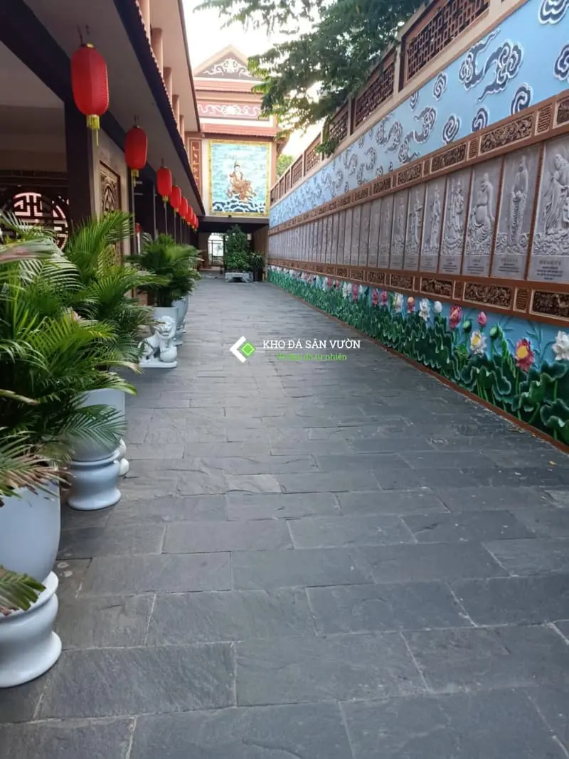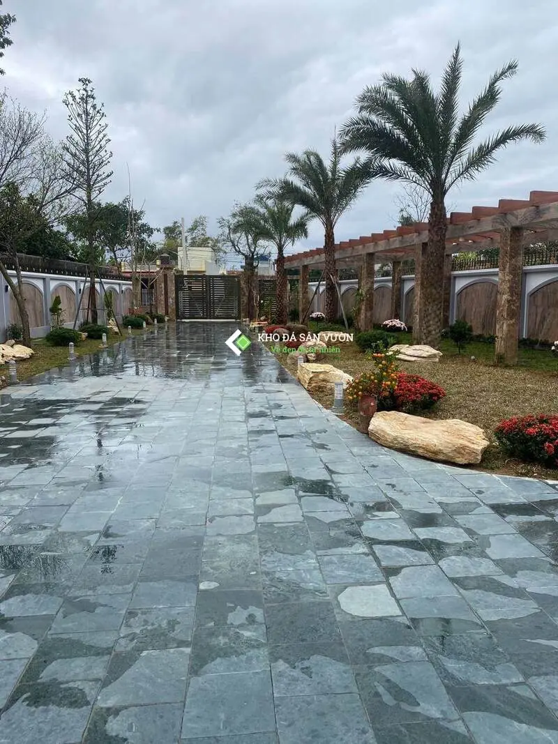 Sân rộng và nắng gắt: Nên chọn đá màu trung tính hoặc tối như màu đen than, xám, xanh rêu để giảm độ chói mắt.