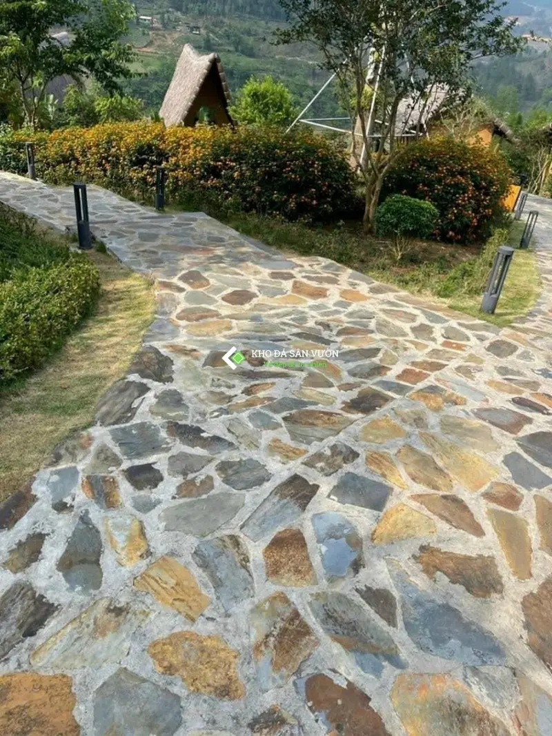 Đá tự nhiên lát sân mang màu sắc độc bản, độc đáo với các đường vân độ màu ngẫu nhiên thể hiển trên từng viên đá không đồng nhất và không bao giờ lỗi mốt.